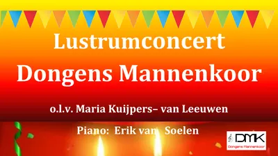Vier het lustrumconcert ter ere van de 55 jarig bestaan van het Dongens Mannenkoor mee! Op 31 mei geven zij een concert onder leiding van Maria Kuijpers-van Leeuwen. Op de piano: Erik van Soelen.