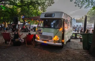 Een kekke DJ-bus waaruit de lekkerste platen worden gedraaid en het parkpodium omtovert tot funky dansvloer